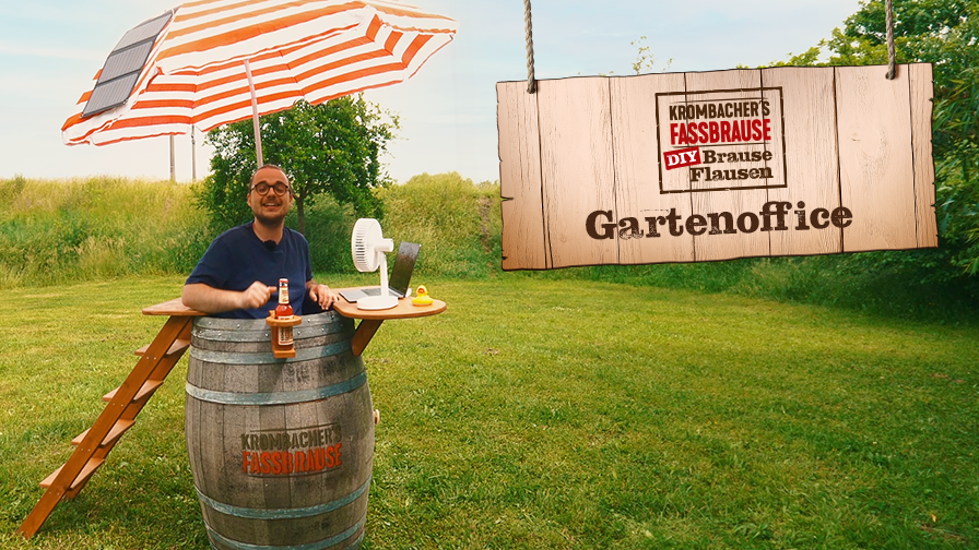 Ganz wichtig an heißen Gartenoffice-Tagen: Die frischgekühlte Krombacher's Fassbrause muss immer griffbereit sein. Hierzu dient unser kleiner aber feiner Flaschenhalter.